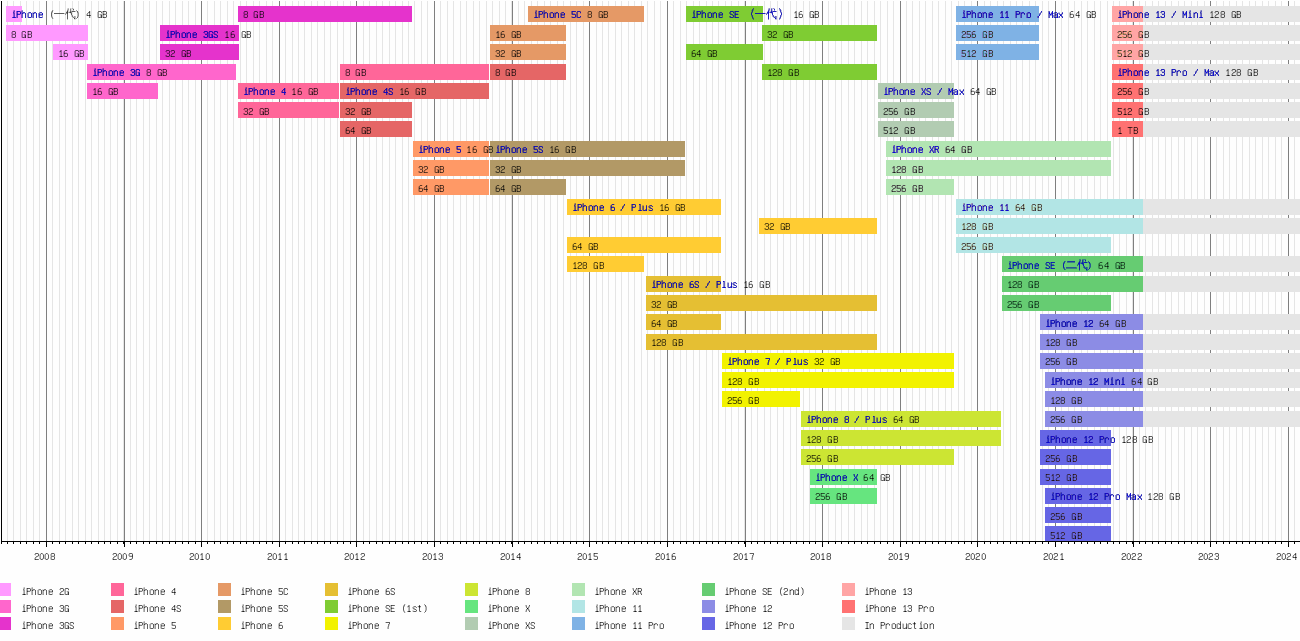 | 2021秋 | iPhone 13 | iPhone 13 Pro iPhone 13 Pro Max | iPhone 13 mini |